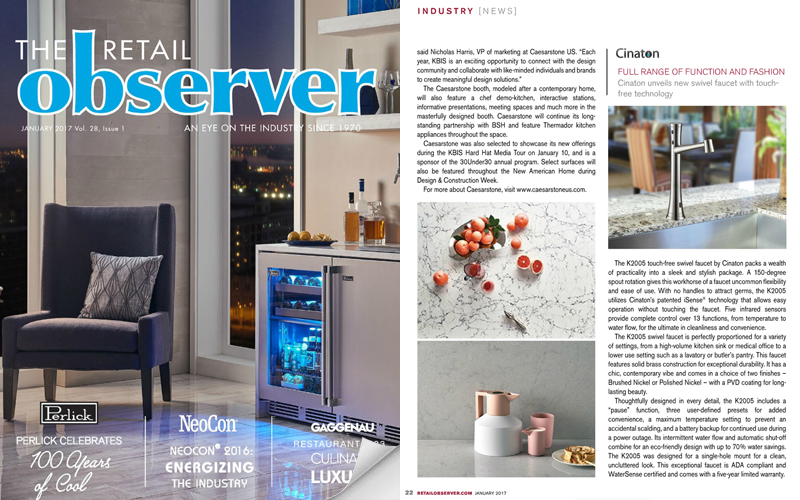 Cinaton was founded by the iSense® Touch-free Automatic Faucet inventor, and has been pioneering the faucet industry. Their iSense® technology has calculated the precise sensitivity to ensure the functionality of all their faucets are intuitive and convenient to the user. All Cinaton faucets feature solid brass construction and comply with federal regulations including ADA and WaterSense® certifications. Cinaton's innovative inventions have received 18 patents worldwide. The brand has created a patented Solenoid valve that turns water on-off, adjusts the temperature, can provide the user the ability to offer three different temperature settings, and adjust flow rate up or down. All this without touching the faucet. For more info please visit: www.cinaton.com.