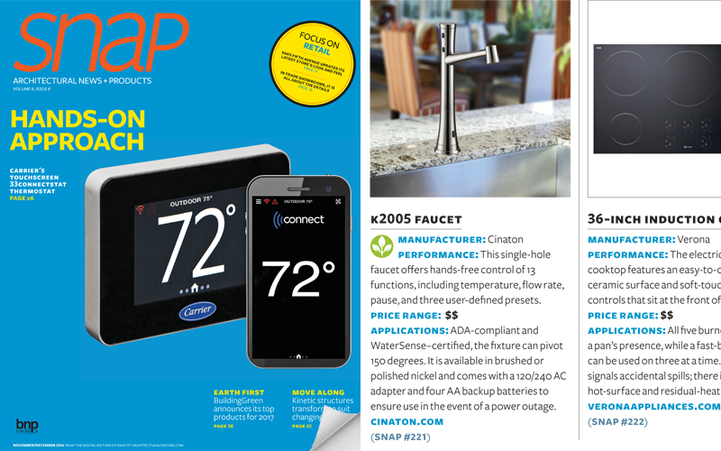 APPLICATIONS: ADA-compliant and WaterSense-certified, the fixture can pivot 150 degrees. It is available in brushed or polished nickel and comes with a 120/240 AC adapter and four AA backup batteries to ensure use in the event of a power outage.